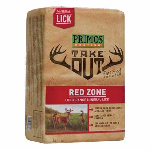 Take Out Red Zone Salt Block gives hunters in every region and condition a proven, durable, and convenient mineral attractant that reaches out with a strong aroma to quickly attract bucks from long range. Its sustained release formula draws deer in and keeps them coming back to paw and dig for the minerals they crave. Fortified with key minerals, Red Zone Salt Blocks help boost bone and antler growth and strengthen the quality of your herd. Use it as part of your Take out Seed & Feed System to implement a simple, proven, and effective plan in your area.Β